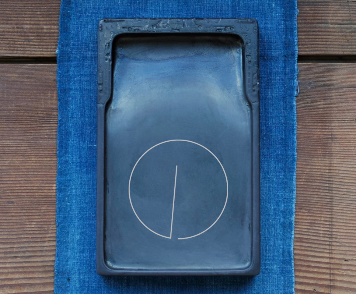 まず、硯のくぼんだ部分(海)に水をたっぷり入れ、そこから平らな部分(丘)に少しずつ水を移して墨を磨り、濃くなったらまた海に戻す。そしてまた丘に水を上げて…という繰り返し。