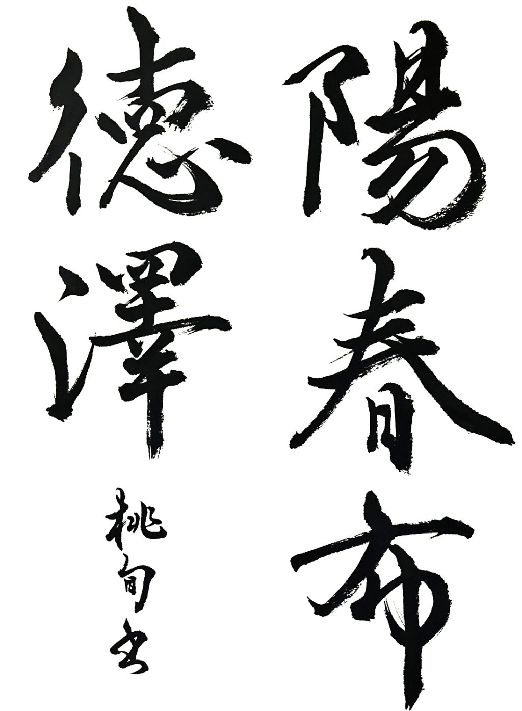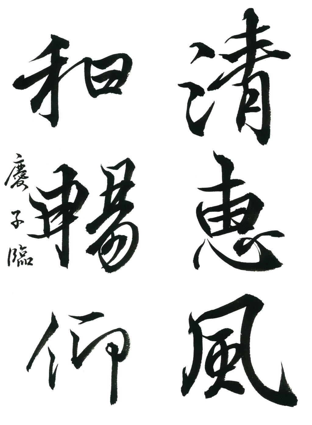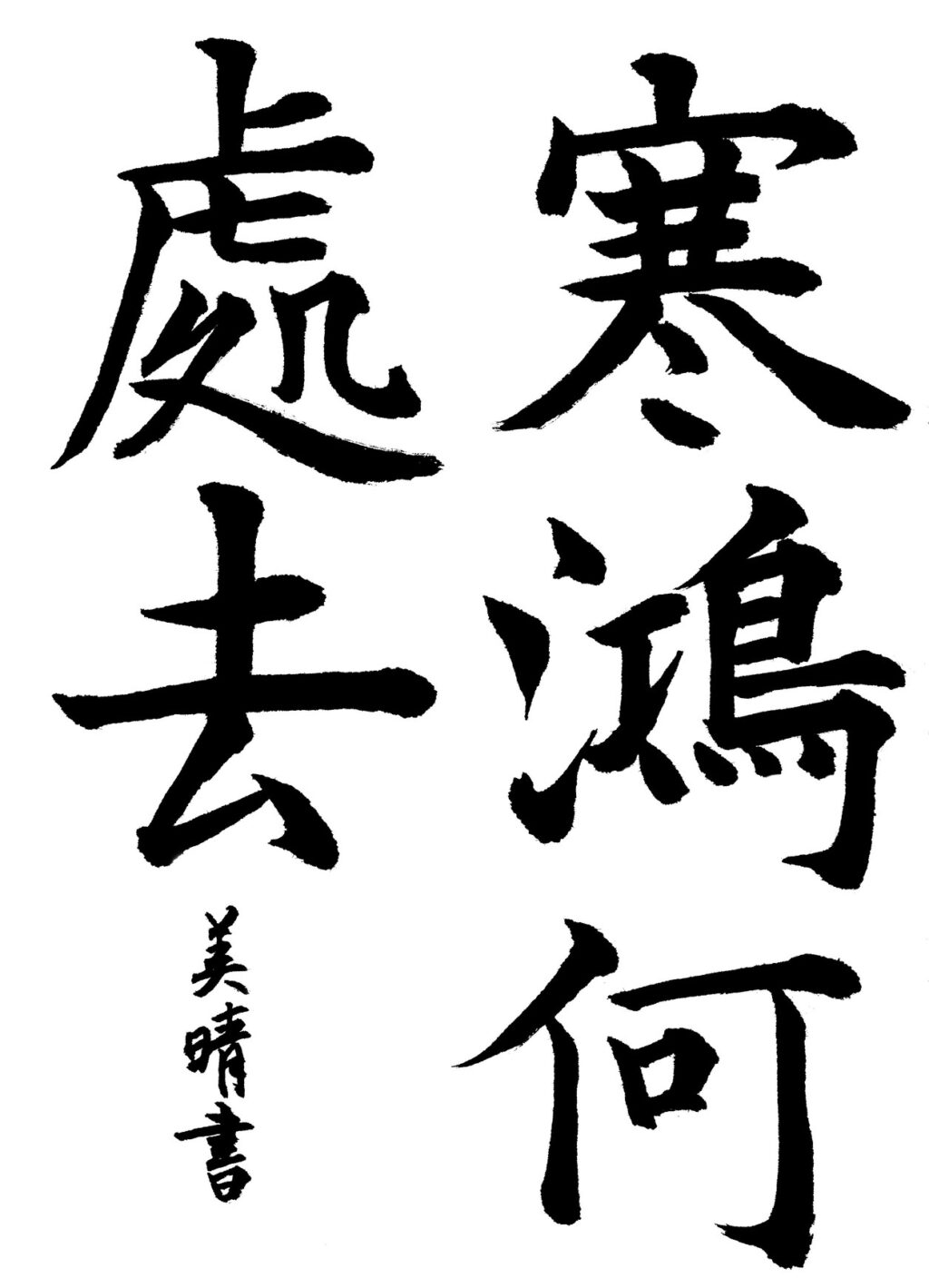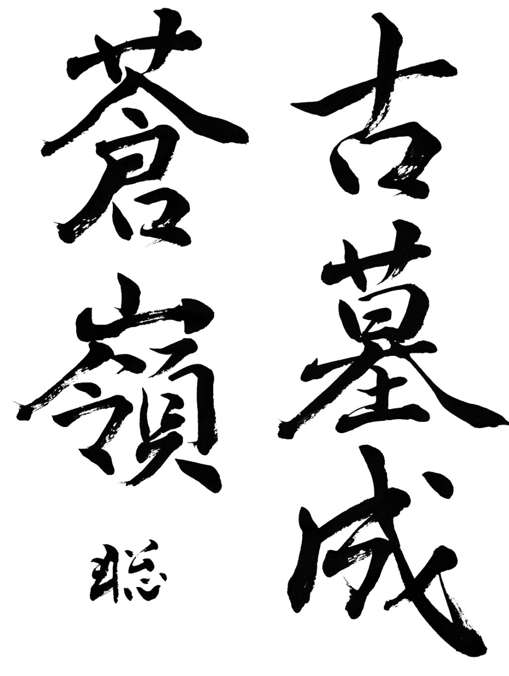 【秀逸】各文字の造形的な特徴を的確に捉え、余白を意識した構成によって、力強い線質がいっそう際立ちました。今後も紙面全体を巧みに活かしつつ、思いきりのある運筆による表現に期待しています。