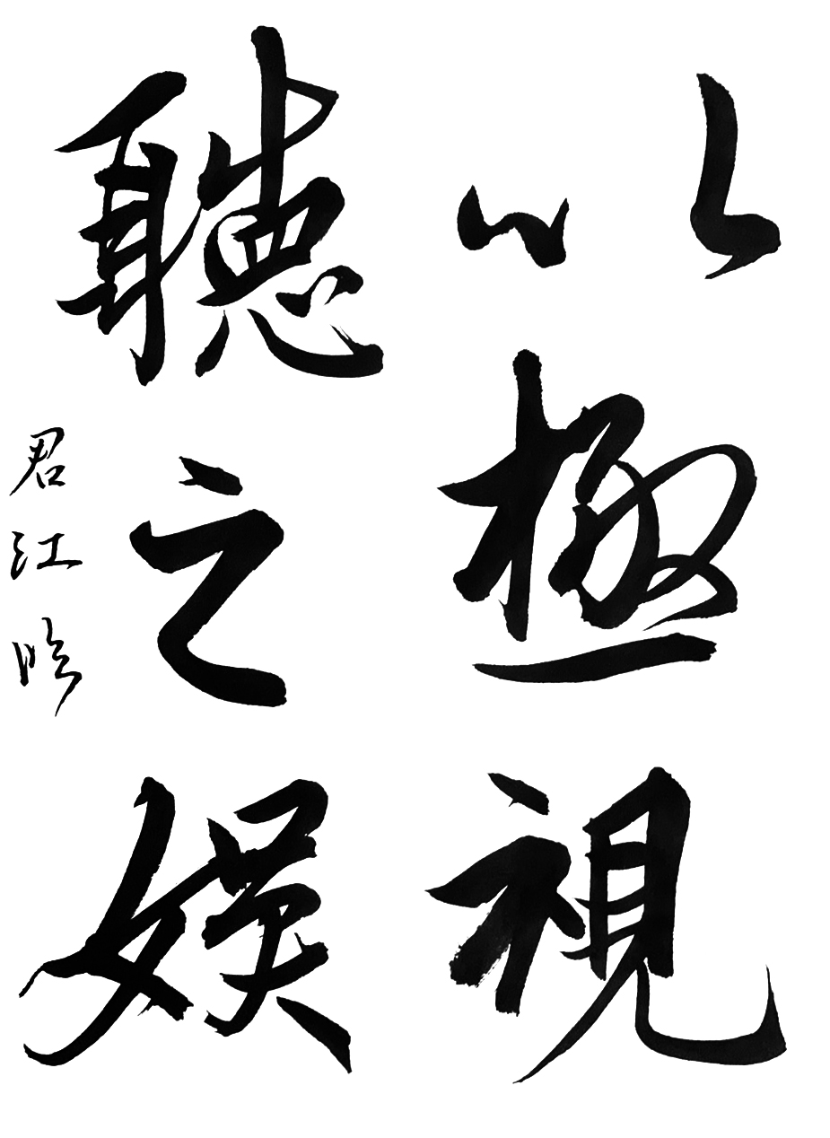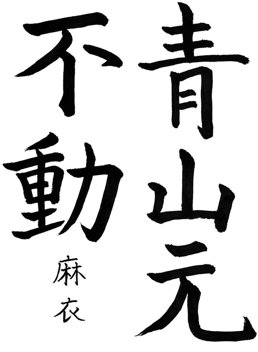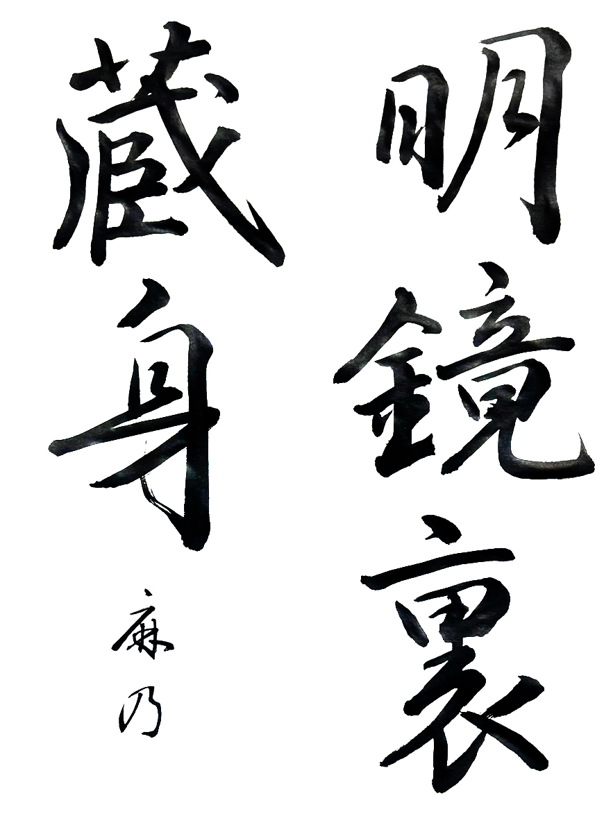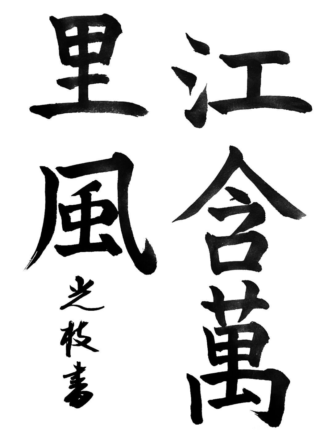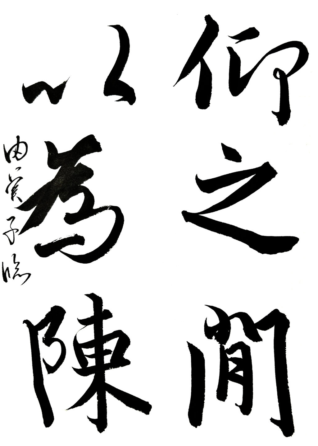 【秀逸】各文字の造形的な特徴を的確に捉え、余白を意識した構成によって、力強い線質がいっそう際立ちました。今後も紙面全体を巧みに活かしつつ、思いきりのある運筆による表現に期待しています。
