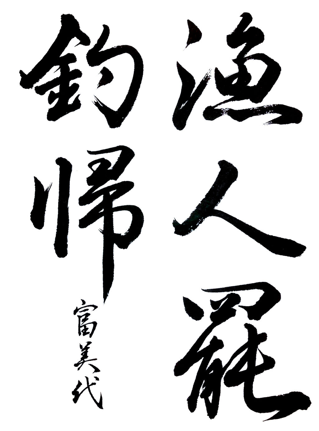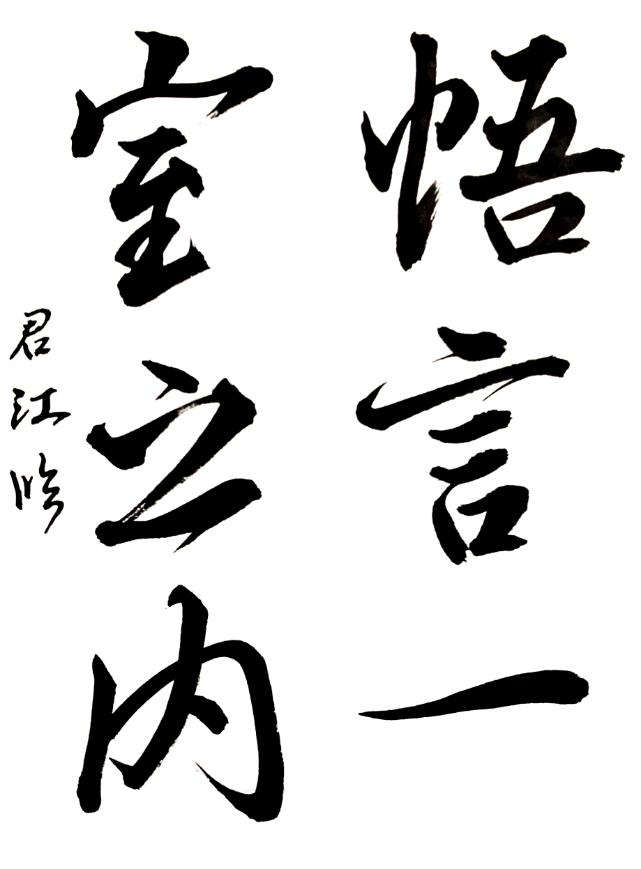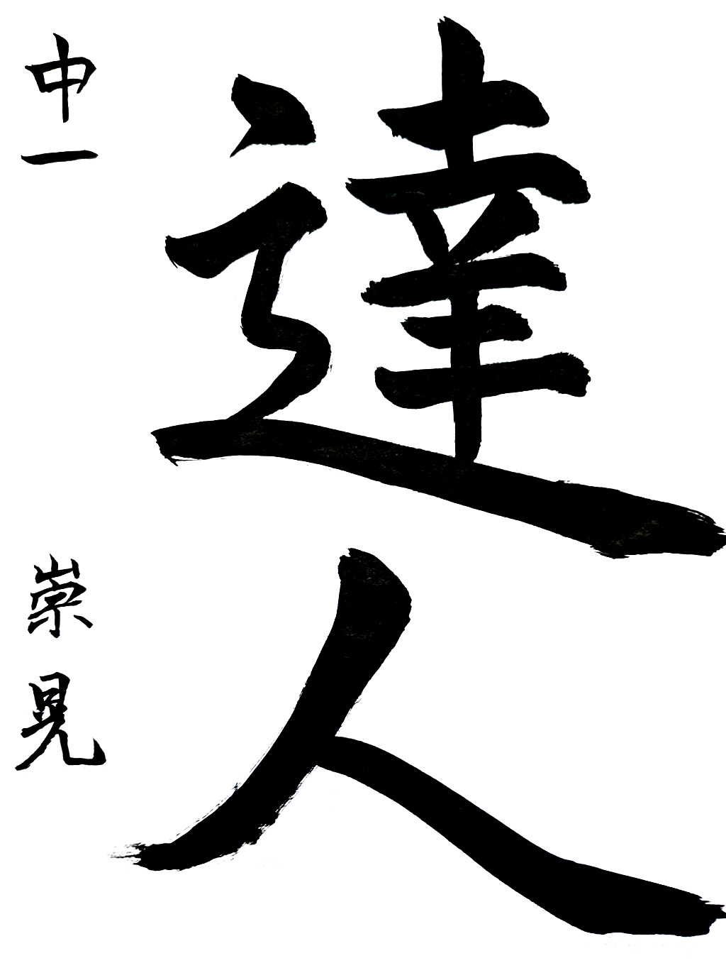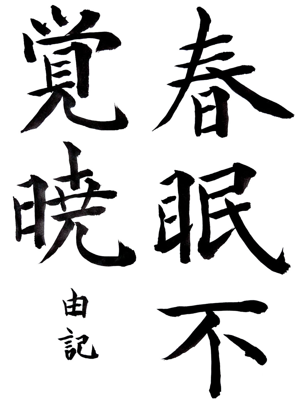 【秀作】穂先の扱いにもさらに慣れ、線の引き締まりとともに余白の明るさが伴い、造形の安定も見られました。この調子で、穂先のバネを活かした上下運動を駆使した書きぶりに、今後も期待しています。
