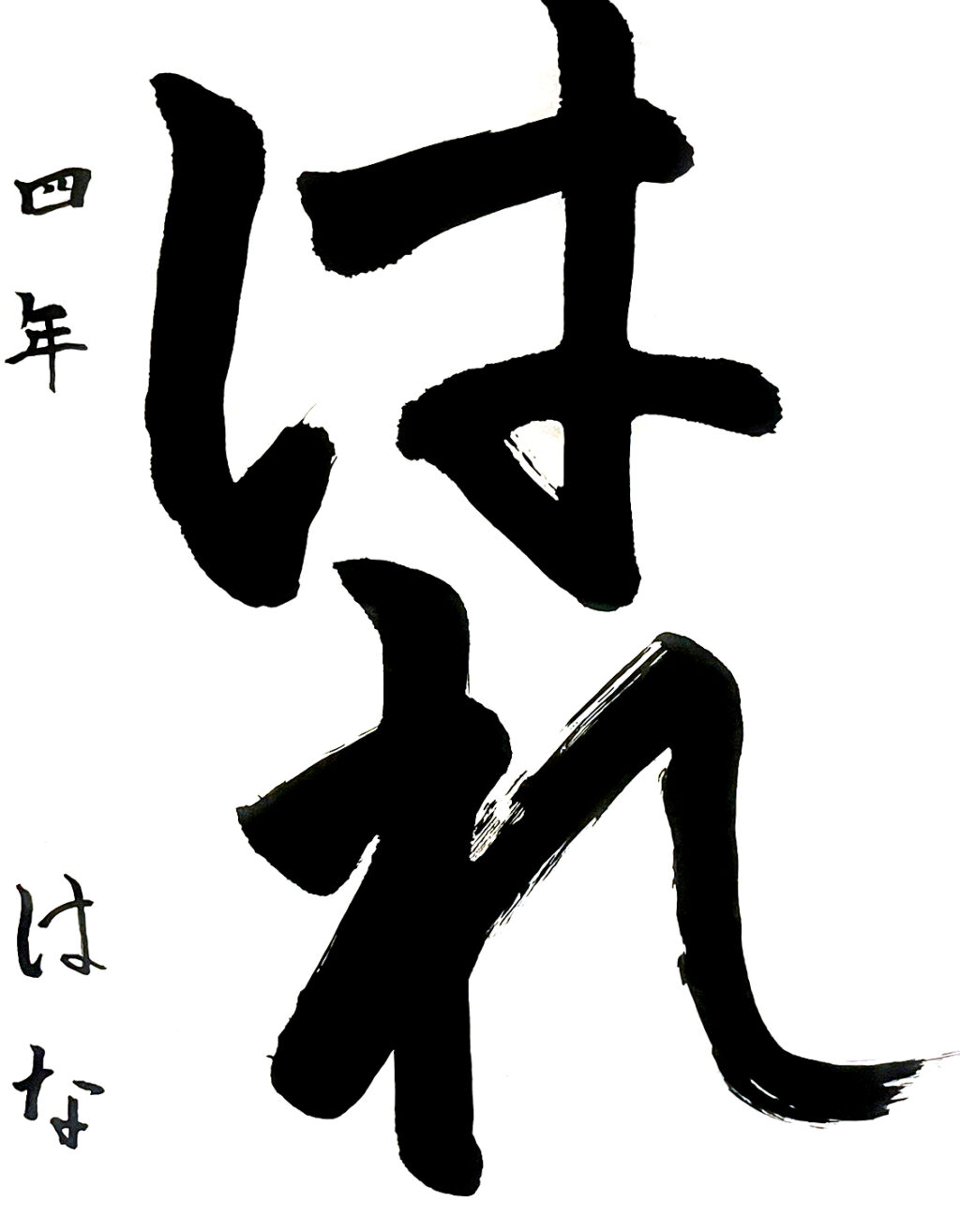 【秀作】造形の特徴に留意し、筆圧をしっかりかけながら、次の線へと続くイメージを持って書き上げることができました。小筆書きの名前書きの行書にも慣れてきましたので、大筆でもこの連綿の意識をさらに表現していきましょう。