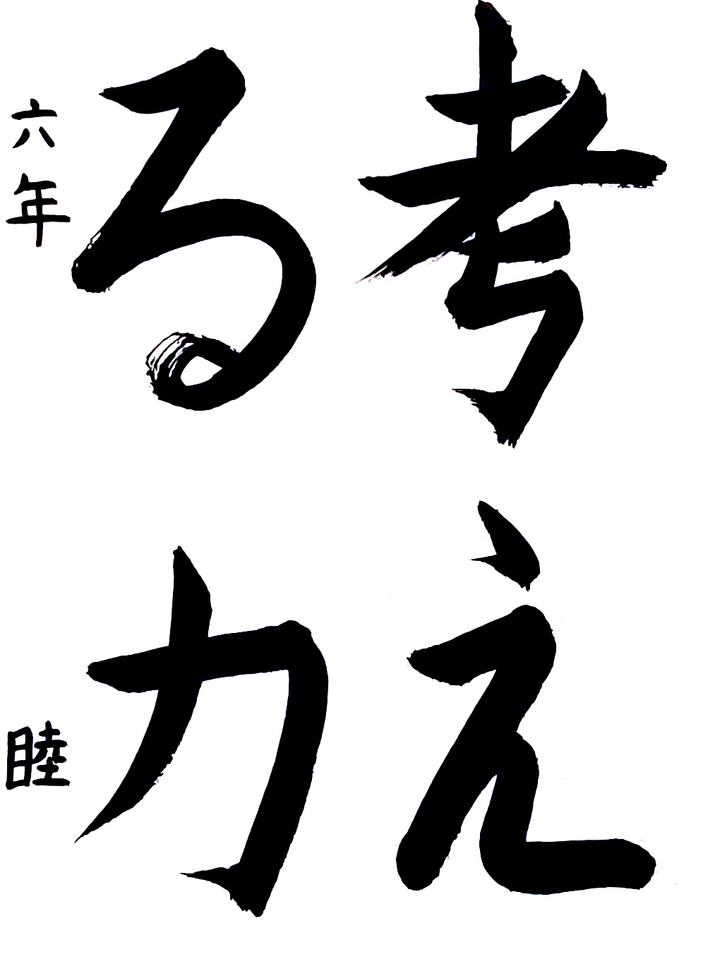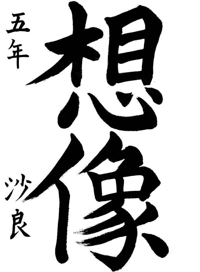 【特選】小学生生活最後の作品となりましたが、四文字の課題を丁寧(ていねい)に、かつ造形の特徴(とくちょう)を捉(とら)えた見事な書きぶりで表現することができました。中学生になられても線質を磨(みが)くことを第一に、ご自身らしい揮毫(きごう)を楽しみにしています。