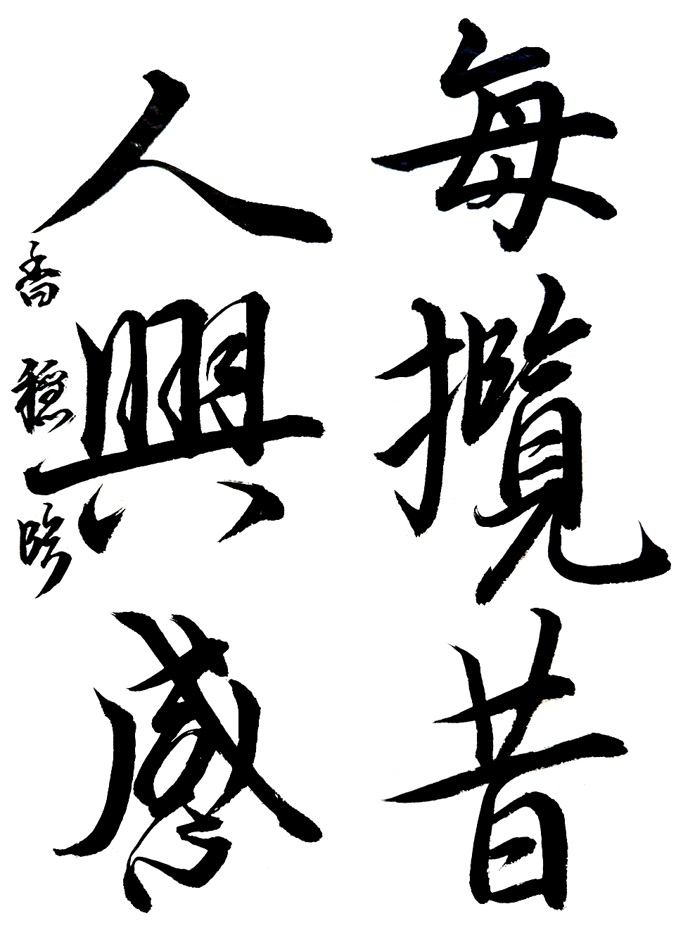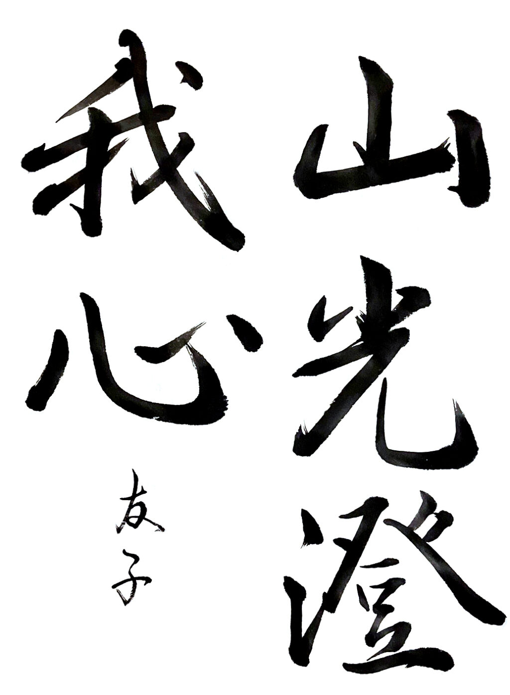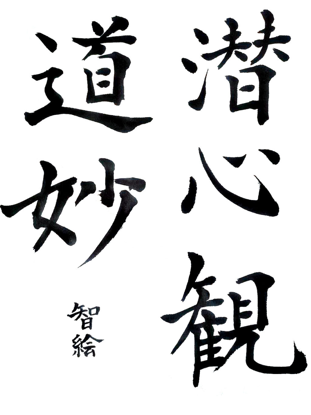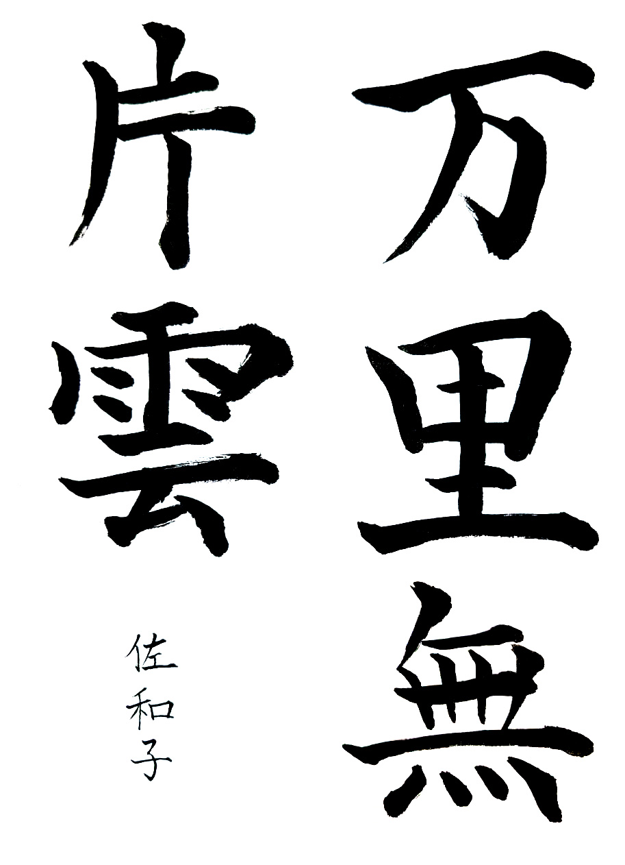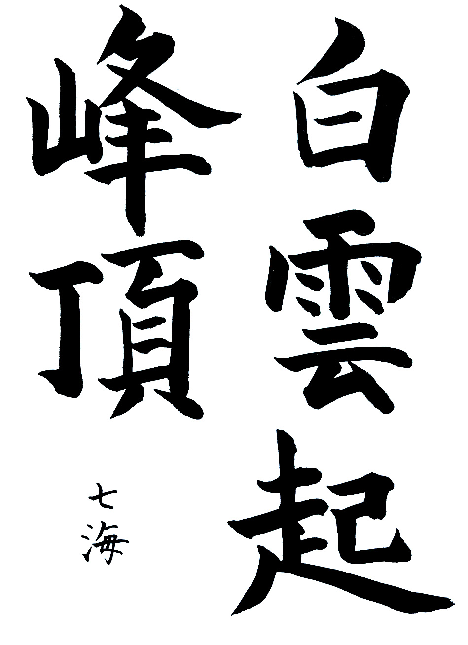 【秀逸】課題は行書に変わりましたが、迷いのない運筆と紙面に食い込む力強い線、余白を活かした造形力など、持ち前の実力が余すことなく発揮されていました。今後もますます期待しています。