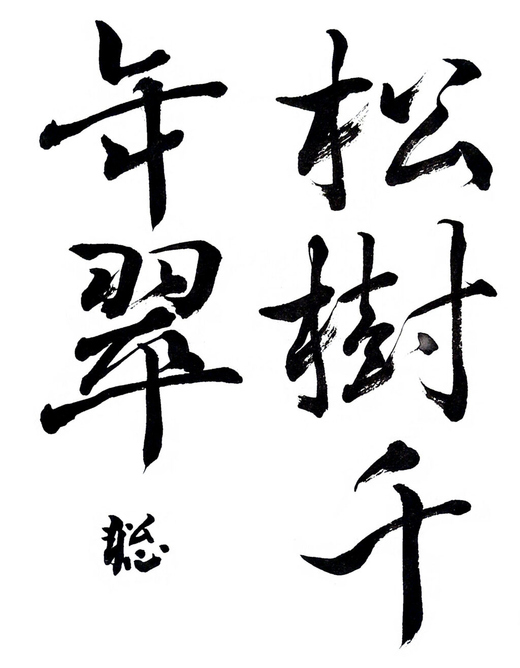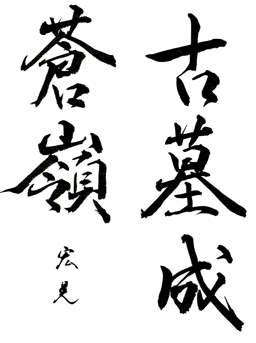 【秀作】造形の安定感は見事で、余白を活かした書きぶりの成果が感じられます。線の揺れや緩みが少し見られましたので、起筆を決めて思いきった運筆の定着に大いに期待しています。